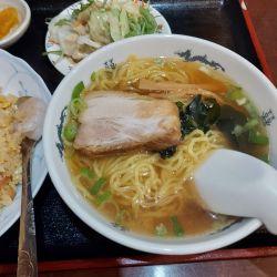 食べやすく、半ラーメンを汁にしました。