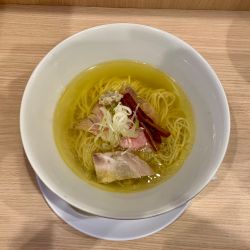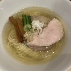 | 備考 | 油の南極堂 高円寺店跡地にオープン。 店主は食の道場卒業後、惜しまれつつ閉店した神保町黒須で修行。 スープは天草大王がベースで野菜などは加えず、 混じりっけなしのピュア鶏100%で炊いた 化学調味料無添加の清湯。 素麺を想起させる三河屋製麺の麺(130g)。 塩蕎麦には味変として トリュフのきのこペーストが添えられており、 レンゲを使いスープに溶かして 味の変化を楽しんでほしいとのこと。 |