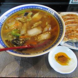 ランチは麺類、ご飯類とメニューも豊富です✨具材は豚肉、人参、白菜、シメジ、ピーマン、イカ、など具沢山で、最後に玉子を入れて炒めており、どこか家庭的な味がします🏡スープは動物系のあっさりした美味しい塩味✨麺は細縮れ麺で茹で加減も好み🍜居酒屋のため、ランチとしては入りにくい面もあ... 続きを見る
