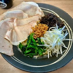 限定のキノコ香る塩ペペロン1050円を券売機でポチり。