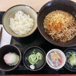 納豆定食+かき揚げトッピングの予定であったが、本日ベーシックに朝そばにした。