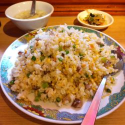 本日はコチラ「你好 恵馨閣2号店」へ伺いランチ定食として提供されている「にんにく炒飯」を。更にはセットでランチ限定「焼餃子」を頂いて参りました。