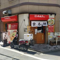 店舗は赤い屋号看板と白い「雲吞麺」の暖簾が目印。