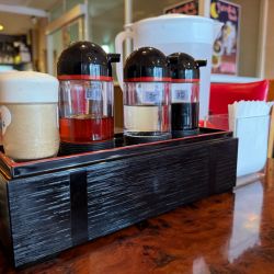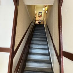 2階にある店内は赤基調のチャイナな、今日現在4人掛けテーブル席が8卓に2人掛けテーブル席が2卓あり麦茶?は卓上のポットにてセルフ(入って左側にお手洗いあり)