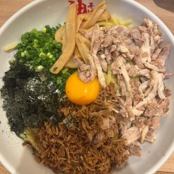全体的にバランス良くまとまっているが、これといった特徴は無かったが、トッピングのおろしニンニク、タマネギ、紅しょうが、調味料が5、6種類ほど卓上にあり、色々な味変が楽しめた。