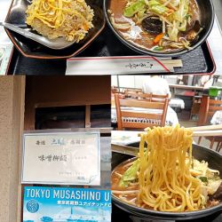てか赤味噌ベースの思ってたよりも全然甘くない濃いめの味噌スープと適度な歯応えの細ちぢれ麺ゎ( ゚Д゚)ウマー♪...因みに麺量ゎ茹で前180㌘程度でマズマズ...