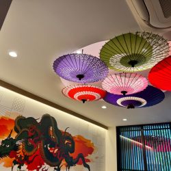 グリーンと赤のど派手な外観の店内も天井に和傘が、壁に龍🐉の絵が飾られた、今日現在厨房向きカウンター4席に2人掛けテーブ... 続きを見る