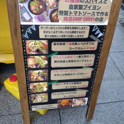 スープカレーのお店で興味あるメニューを出していたものの、現在実店舗はもうやっていないと思っていた。せっかくなので、こちらで掲題のメニューを激辛仕様で購入。