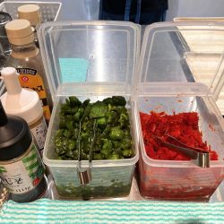 福神漬、胡瓜の漬物、トンカツソースが、カウンターの端に置かれているので、お好みで。