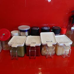 物価高のなかこれだけの調味料を提供するのは厳しいだろうが、味変のレパートリーが増えて嬉しい限り。