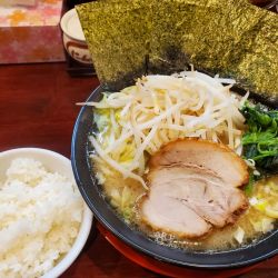 【注文】豚骨ラーメン・醤油(800円)+キャベもや(130円)+ライス(無料)。味噌ラーメンはまだ販売していなかったため、今回はベーシックな標題のラーメンにする。好みの指定は全て普通にする。