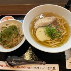 沖縄そば(琉球そば)を提供する市内本店の2号店です。沖縄そばはいただいたことがありますがこちらの本店は未訪、現地でも未食です。
