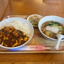 壁にあるメニューから「麻婆丼+半ラーメン)選択