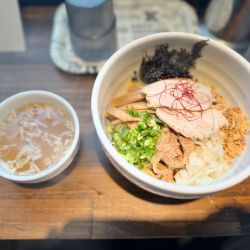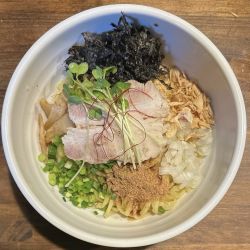 各素材を躊躇なく混ぜ合わせ食すと昇天。本店もそうだが良質な海苔の味が印象に残る。中華そばもはじめたらしいので次回の楽しみにしよう。
