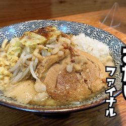 再訪?にて…「炙り明太〜」ゎもろちん唆らないので未食G系の「ラーメン¥950」麺少なめ、全部コールぉ。