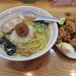 たっぷりの大根おろしと大粒の梅を