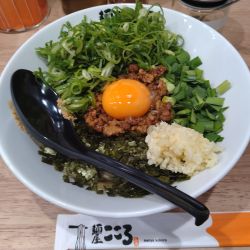 こちらは昔からラーメン屋さんだった場所、今年4月にオープンしたそうです。壁面サインの「MAZESOBA KOKORO」がカッコ良いですねえ。店内は狭小、若者で満席です。外設置の券売機で食券購入し10分待って入店着席。... 続きを見る