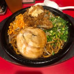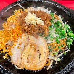 注文は看板の鉄板あぶらーめんで、麺200g。