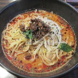 黒胡麻ベースにしてはやや明るめの色合いながら、深めのゴマのコクとほんのりした甘み、スパイスの辛さ、微かな酸味が一体となって複雑かつカラフルな旨味を作り出している。最後まで飽きの来ない味わい。スープ量は少なめ。辛さレベルはピリ辛の1段上程度。痺れ... 続きを見る