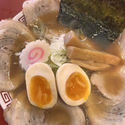見た目どおり、醤油の色もイイですが、スープも味わい深く、大判チャーシューが目を惹きます。さらに極太メンマの食べ応えにトロトロ煮卵が、500円とは思えないクオリティで、また通いたくなる一品です