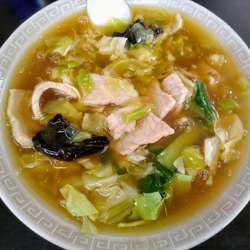 昔懐かしい中華そばが厚切りのチャーシュー6枚で大変豪華になった一品。