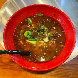 「地獄麻辣牛肉麺」@四川料理 小青椒の写真【概要】本格的な四川麻辣湯の店で食べる、強烈な辛味と痺れ感を堪能できる気合の入ったガチ麻辣スープを楽しむ一杯。