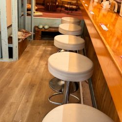 店内は白と水色基調の年季の入った味のある、今日現在厨房向きカウンター5席に1人掛け丸テーブル席が1卓、奥に2.3人掛け丸小上がり席が2卓ありグラスは出して頂きお水は卓上のピッチ... 続きを見る