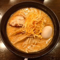 ごま油香る動物系の旨みのスタンダードな味噌スープ。濃厚味噌ってあるけど、味噌や出汁が濃い訳でも粘性がある訳でもなく、食べてきた中では標準的。少しぬるいか。