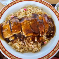 炒飯の上にポークステーキがドーンとのっており、ポークステーキは青森県... 続きを見る