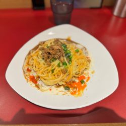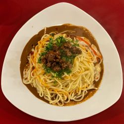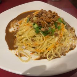 | メニュー | メニューの写真を見る 汁無し担担麺 1000円 |