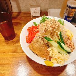 二郎系ラーメン店でも夏の風物詩があり、千里眼や用心棒の野菜モリモリガリマヨスタイルや、立川マシマシのタルタル豚バラ系などインスパイア系の冷やし中華が毎年の楽しみです☺️