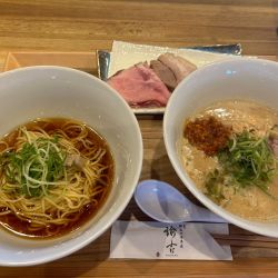 (二つのハーフサイズの麺をを一杯ずつ提供)