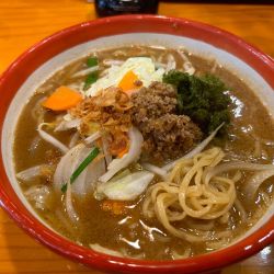 スープは濃そうな味噌󠄀。麺は縮れ中太麺。