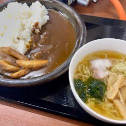 この日は牛タンカレーにハーフラーメン。