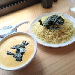納豆を生卵で泡立てて、動物系清湯に酸味を加えたスープに合わせているそうです。