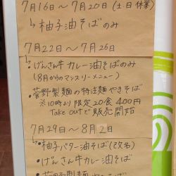 | メニュー | メニューの写真を見る 柚子塩油そば 660円 |