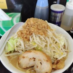 さて店に入って左にある券売機でラーメン250/300gの食券を買いお好きな席に座ります