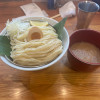 丼底には醤油ダレが沈み麺上には牡蠣ペーストの他にバラ海苔、刻み玉葱、ネギがのってます。
