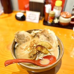 昨今流行りの純すみ系や花道系と違って、炒めた香ばしさや味噌の濃厚さはありません。しかしまずまずの濃さの味噌ですし、動物系の出汁がしっかりしているのか、いわゆる味噌汁ラーメンにもなっていません。