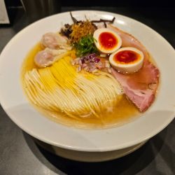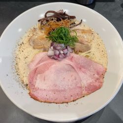 ラーメンと同じサイズのチャーシューに覆いつくされたインパクト強めのビジュアル。岩海苔に赤タマネギとシンプルな構成だが、それぞれの特徴が最大限に発揮される組み合わせ。塩ダレを掻き混ぜると海苔の風味と合わさり良い感じ。パッツリした歯切れの良い中細麺にタマネギの食感がマッチ。チャーシューでリッチな気分に。この内容で350円とラーメン比較ではリー... 続きを見る