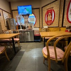 店内は前回と少しレイアウトが変わった、今日現在4人掛けテーブル席が6卓に2人掛けテーブル席が3卓あり紙おしぼりとお水は壁側の棚からセルフですが今回は出して頂きました(お手洗いはビル内1階のトイレ使用)。