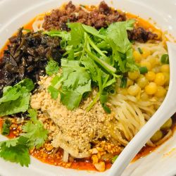 平べったい形状の中細~中太麺はモチヤワゴムな食感、混然一体となった味わいを楽しむには固めの食感よりこちらの方が親和性高いと思います。麺量は300gちょいか。具は豆や高菜っぽい刻み漬物やひき肉にナッツ、ぐち... 続きを見る