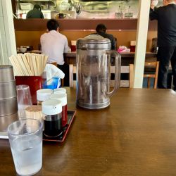 | メニュー | メニューの写真を見る 醤油ラーメン 850円(背脂も同額) |