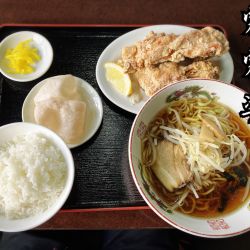 再訪にて「鶏の唐揚げ(醤油ラーメン)¥780(ランチ)」ご飯少なめぉ。
