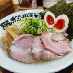 とても美味しいラーメンでした😃。途中からにんにくの味変も美味しかったです。スープも完飲しました。ただ個人的には国産小麦粉で自家製麺ということですが細麺過ぎてもう少し太くして欲しいかなぁ☺️
