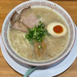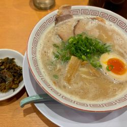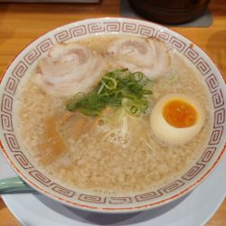 具は、小ねぎ・メンマ・チャーシュー2枚・味玉半身。卓上に、辛子高菜の設置は無し。