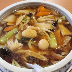 【注文】五目刀削麺(980円)。この店では2種の刀削麺を提供している(もう一つは牛スジ入り刀削麺)が、今回は五目系メニューにしてみる。