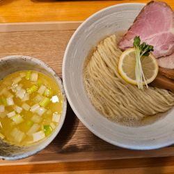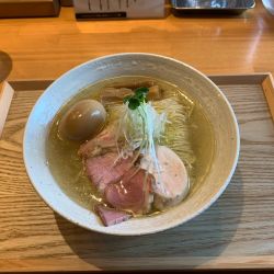 去年11月にオープンし、もうすぐ1年🎉すっかり人気店になりました㊗️早速人気の表題を注文👍吊るし窯で焼き上げた肩ロース焼豚は芳香で、鶏ムネ肉もハーブを感じておいしかった🍖スープはハマグリなどの魚介の風味がよく、スクエアカットのネギが食感と味の変化をもたらし良い役割🐚麺もツルツルで卓上の藻塩だけでもいけます🍜後半はレモンを絞り、黒七味も味わい完食🎉最後に魚介出汁のスープ割りをもら... 続きを見る