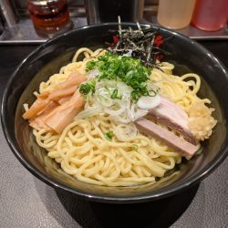 もっちもちの太麺に、さっぱりしつつ旨味はしっかりある油ダレ。お酢を多めに入れて、卓上のタマネギも投入。どこで食べても安定の美味しさです。