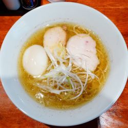 この日はオーケストラの本番だったので、朝から大船にいました。リハーサルが終了したのでこちらに歩いてきました。12時25分に訪問、外待ち5名に接続しました。回転は早く、30分には食券購入して入店できました。味変アイテムはコショウミル、七味唐辛子、山椒ミルが置いてありました。